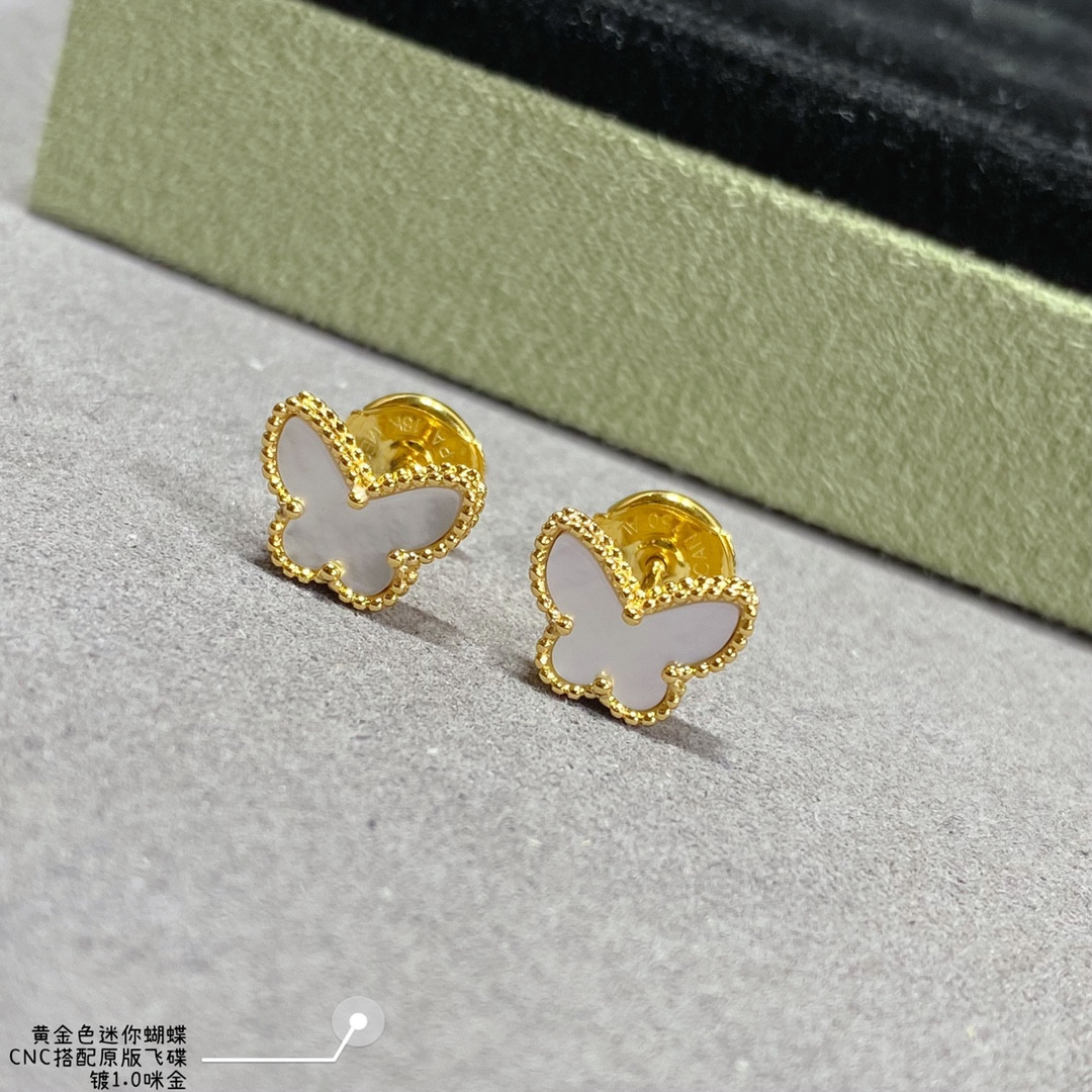 V*n Cl**f & Arpels White Mother-of-Pearl Mini Butterfly Stud Earrings