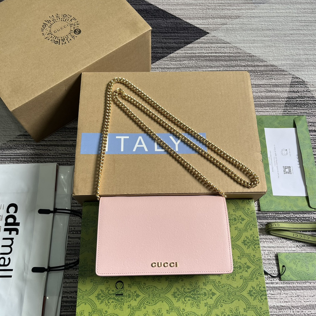 CHAIN WALLET WITH Gvc*1 SCRIPT PINK 7.8"W x 5"H x 1.6"D
