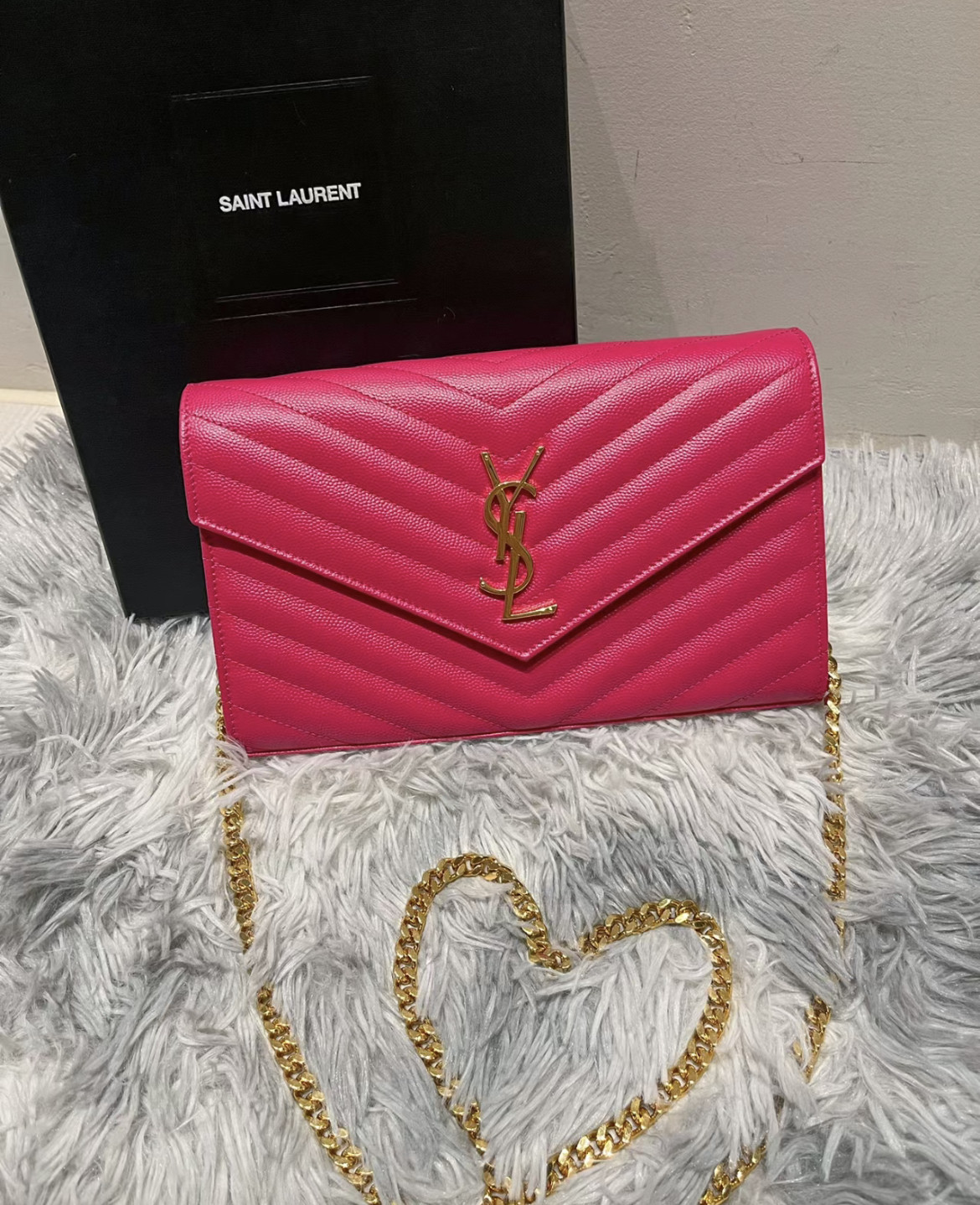 UPTOWN CHAIN WALLET IN CROCODILE-EMBOSSED SHINY LEATHER