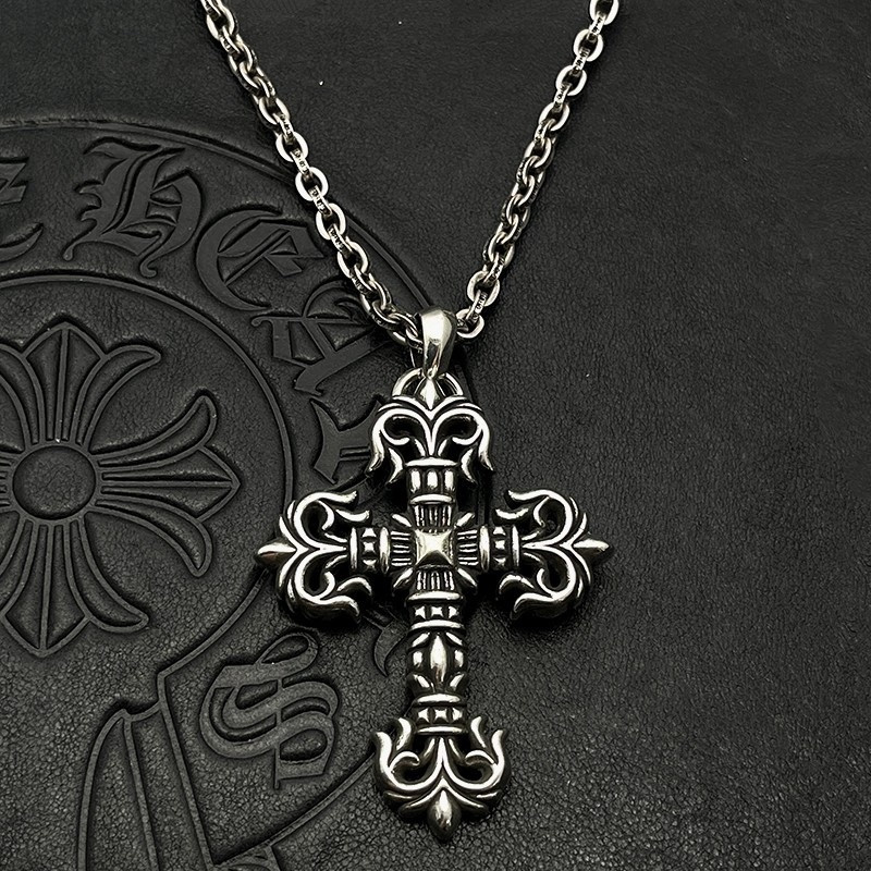 Ch*0me He**ts Twisted Cross Pin Necklace (Chain length 45+5cm)