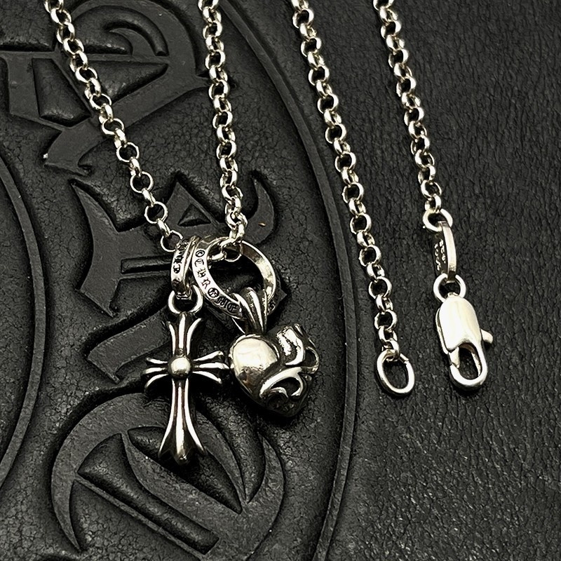 Ch*0me He**ts Heart and Cross Double Pendant Necklace