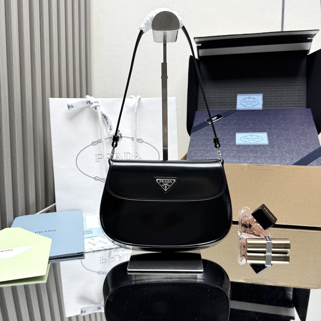 Pra*a Small Cleo brushed leather shoulder bag with flap 15.5x22x4cm