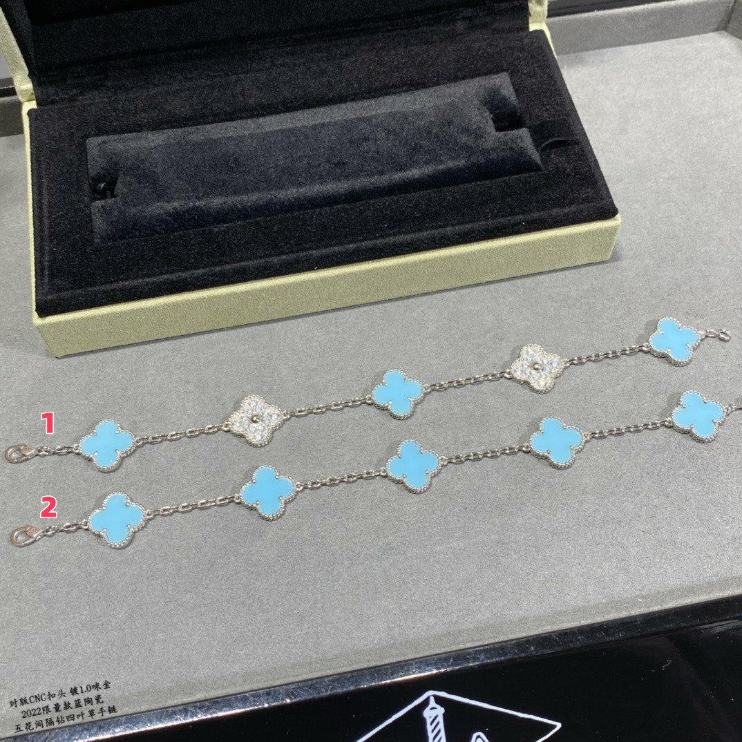 V*N CL*F & arpels sapphire blue agate five-flower four-leaf clover bracelet