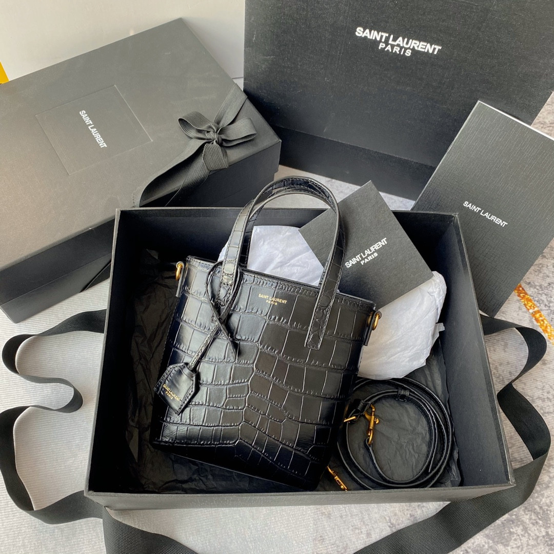 Y51 Sa1nt Lau*nt PARIS MINI TOY SHOPPING IN CROCODILE-EMBOSSED LEATHER BLACK 7.1 X 6.7 X 3.1 INCHES