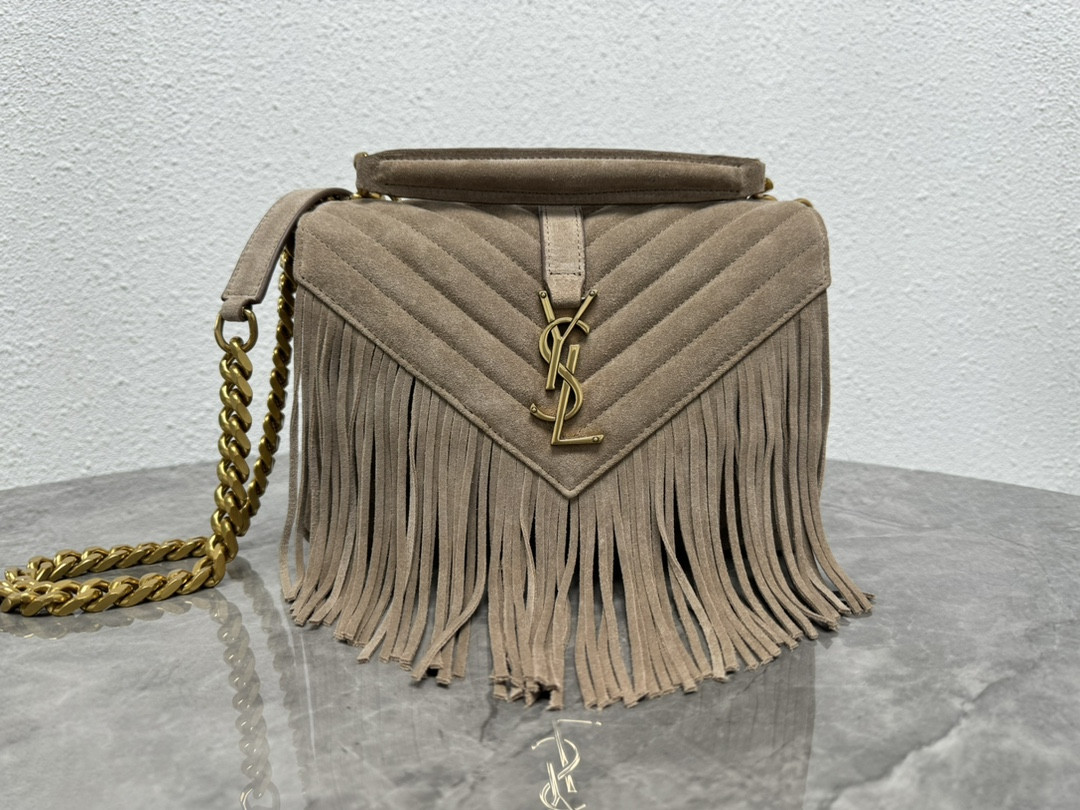 Y51 COLLEGE MEDIUM IN QUILTED SUEDE GRAY 9.4 X 6.6 X 2.5 INCHES